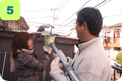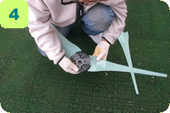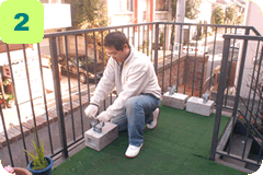 ベランダ屋上等のコーナーに設置場所を決めてコンクリートブロックを置き、タワー用ホルダーを取り付けます。 |